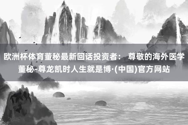 欧洲杯体育董秘最新回话投资者: 尊敬的海外医学董秘-尊龙凯时人生就是博·(中国)官方网站