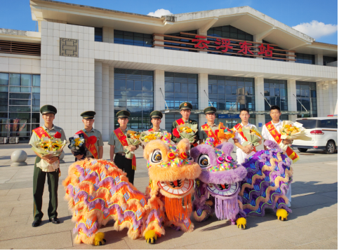 在云浮市各大高铁站,当退役士兵们走出站口,锣饱读声瞬时响起,舞狮队赶紧登场,狮身灵动进步,时而摆尾问候、时而抬头献礼,用传统民风庆典为退役士兵奉上归家道喜;退役军东谈主事务系统志愿者们主动向前接过行李,为其率领“光荣返乡”绶带及奉上鲜花,家属们向前拥抱,现场温馨与吵杂交汇;退役士兵手捧鲜花,飘溢着得到感、幸福感、荣誉感满满的本心和兴盛。